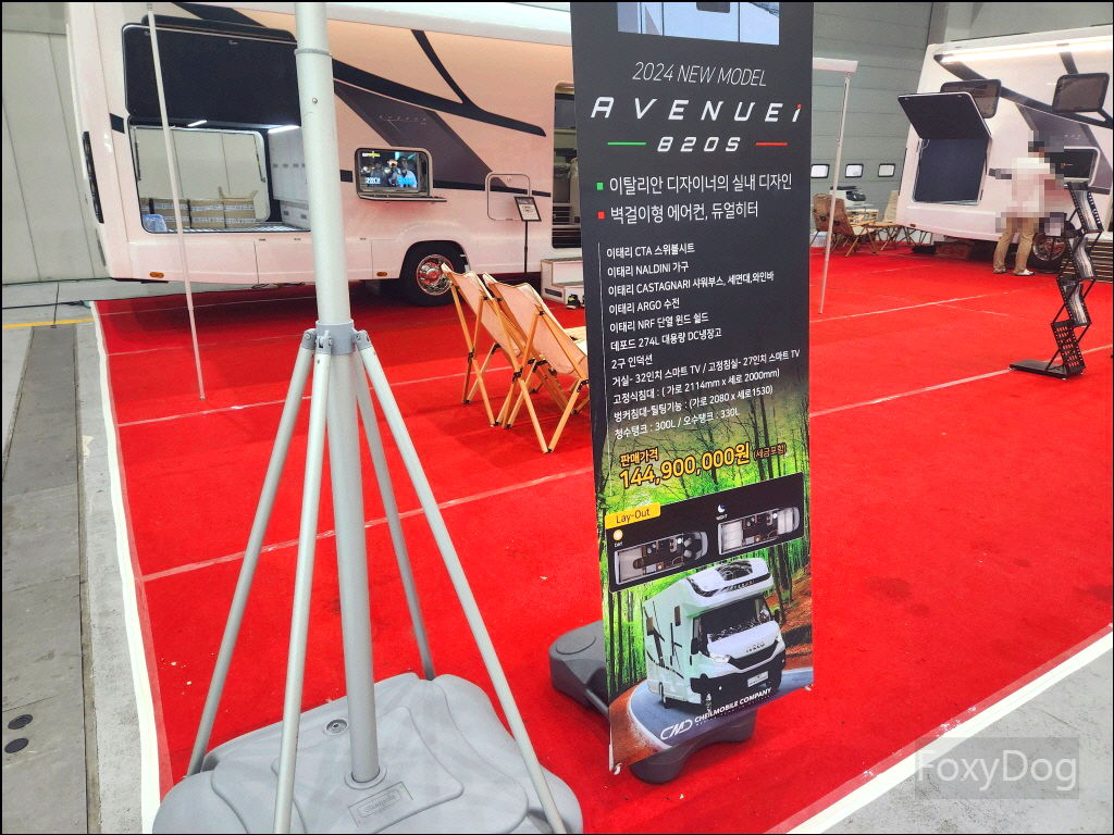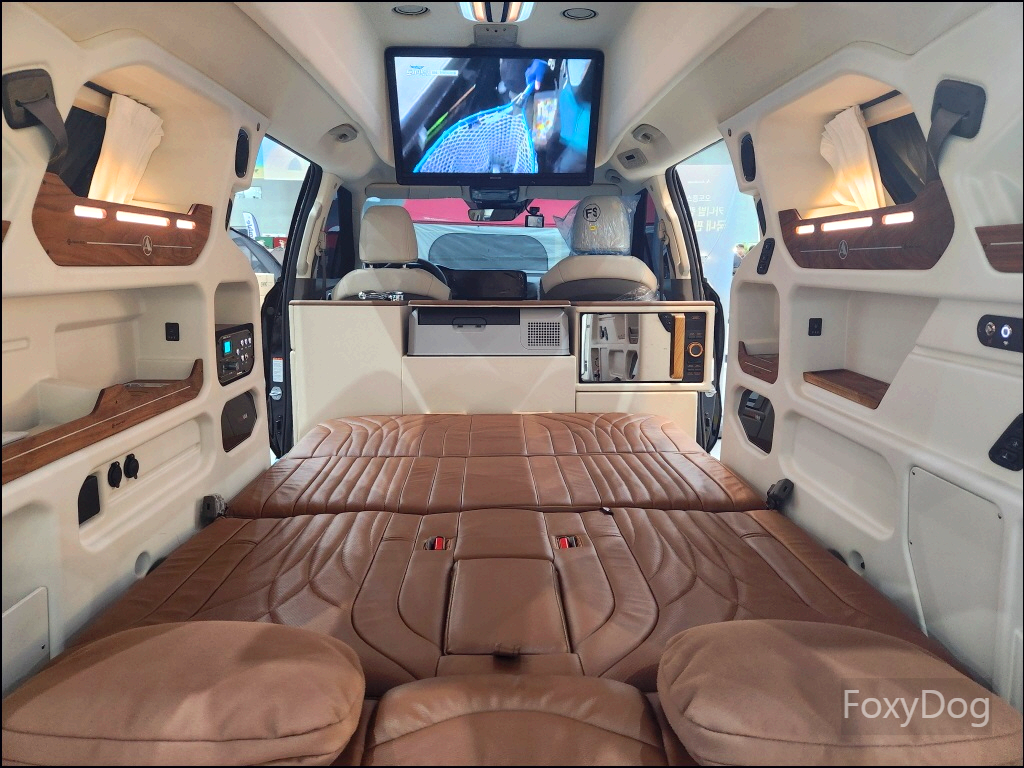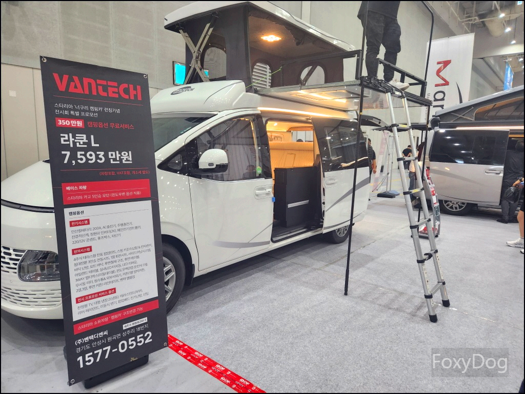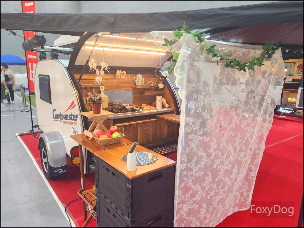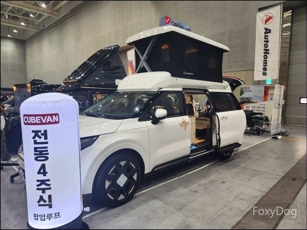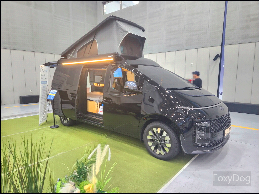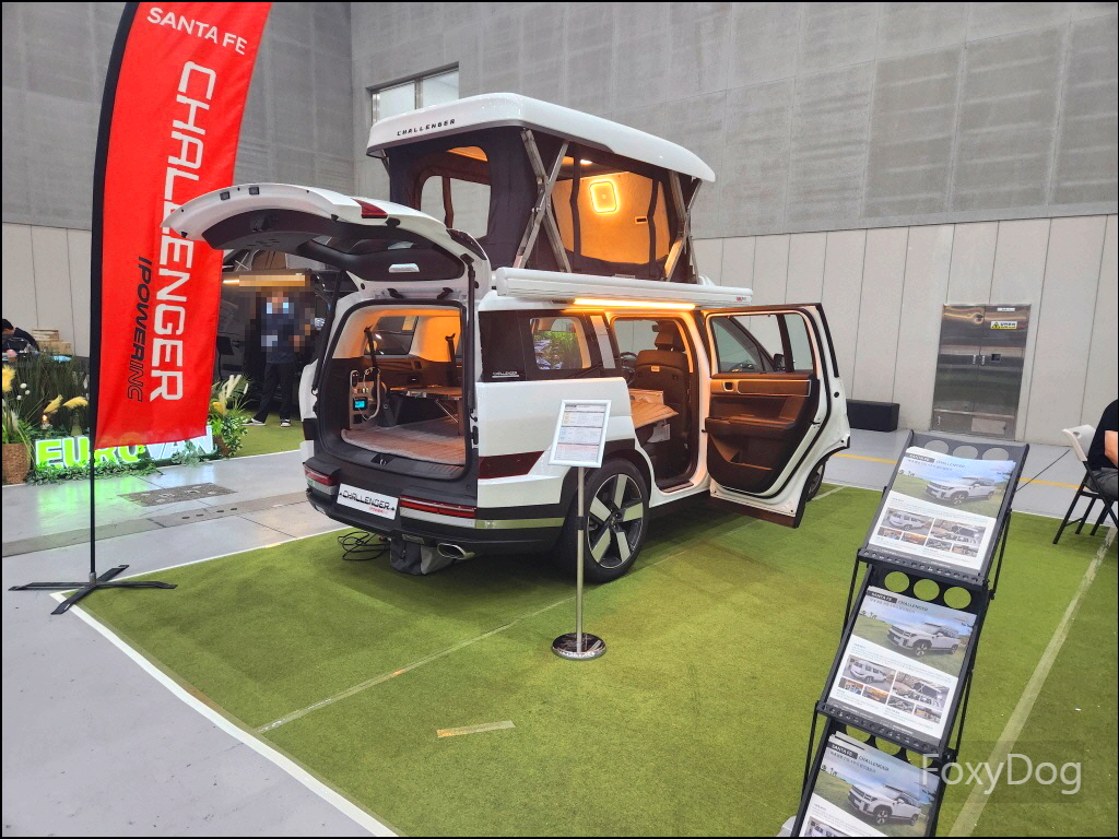 확실히 캠핑카가 좀 더 편의성에서 좋은 것 같다. 예전에는 11인승 이상의 승합차만 캠핑카로 개조하는 것만 합법이었지만 「2023년 3월」 이후로는 법적으로 모든 차종을 캠핑카로 개조할 수 있어서 다양한 차량의 캠핑카 개조가 나오고 있다. 가장 무난한 카니발, 신형 산타페, 승합차(스타리아), 화물차량등이 있다. 이번 전시장에서는 경차 레이(로디) 같은 캠핑카는 없어서 아쉬웠다.
