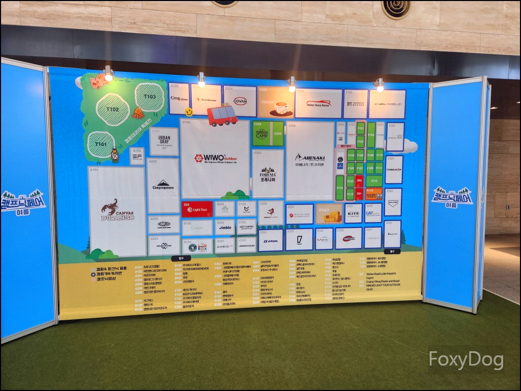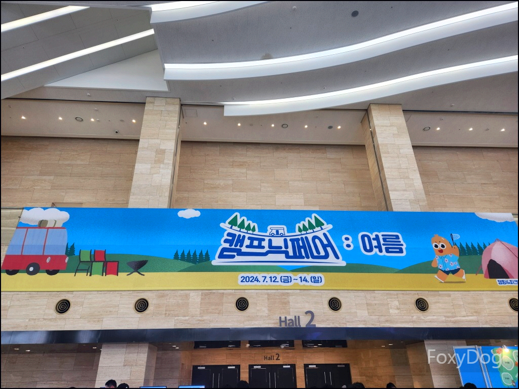 건물 내로 들어오니 적당히 선선한 게 기분 좋은 온도가 느껴졌다. 에스컬레이터를 타고 내려가니 입구 앞에서 대기하는 사람들이 눈에 들어왔다. 캠프닉페어 행사는 컨벤션센터 전관을 다 사용한다고 한다. 그런데 10시가 다돼 가는대도 생각보다 대기줄이 100명 이하로 그렇게 많지는 않았다. 뭐 덕분에 북적거리지 않고 편하게 구경할 수 있어서 좋았다. 대기하다 보니 안내원분께서 카카오톡 친추를 하면 선착순으로 부채&과자를 준다고 해서 고맙게 받은 후 드디어 입장시간이 되어 입구로 들어갔다.