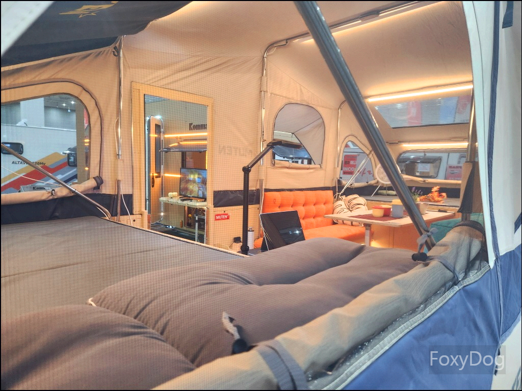 이 카라반은 펼치면 무슨 요새처럼 보인다. 내부 공간이 우리 집 큰방보다 넓다. 말은 그렇게 했지만 넓은 개인 토지 공간이 있다면 로망으로 하나쯤 있으면 좋겠다.