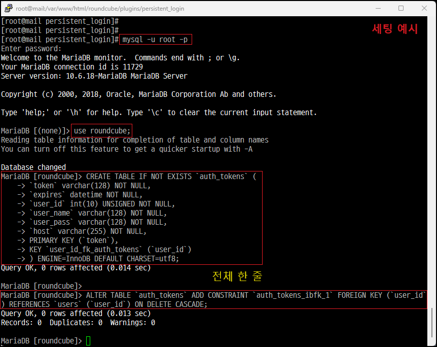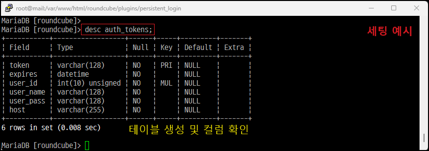 [root@mail persistent_login]# mysql -u root -p [MariaDB 접근]
