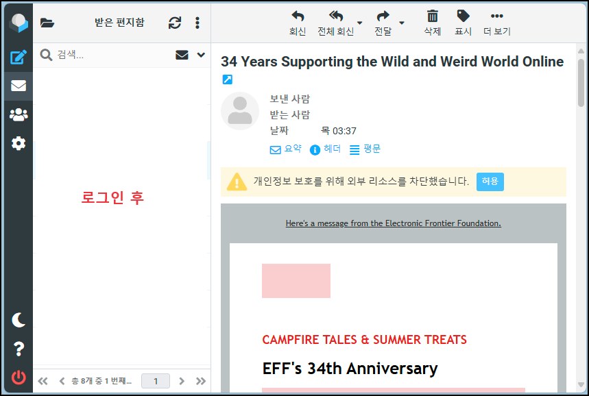 예를 들어 마이크로소프트 엣지「Edge」로 로그인했으면 이후에도 같은 브라우저로 메일 URL 접근할 것, 다른 브라우저 구글 크롬「Chrome」으로 로그인하면 새로운 세션으로 접근하므로 다시 로그인해야 합니다.