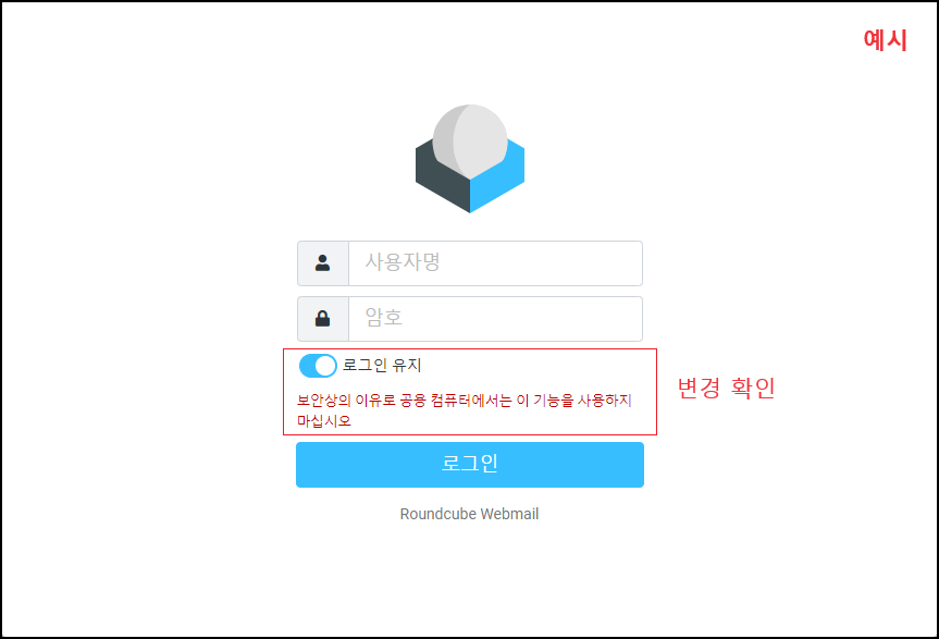 사용자 편의성으로 적용하면 좋은 기능이지만 메일 보안 검사에서 위배될 수 있는 기능입니다. 만료일을 적당히 조정하거나 특정 IP에서만 '로그인 유지' 기능을 사용할 수 있도록 적용하는 것을 권고합니다. ※ 모든 내용은 직접 테스트 및 확인한 내용만 업로드합니다. 오타나 잘못된 정보가 포함되어 있다면 지적 및 정보 공유 감사합니다.