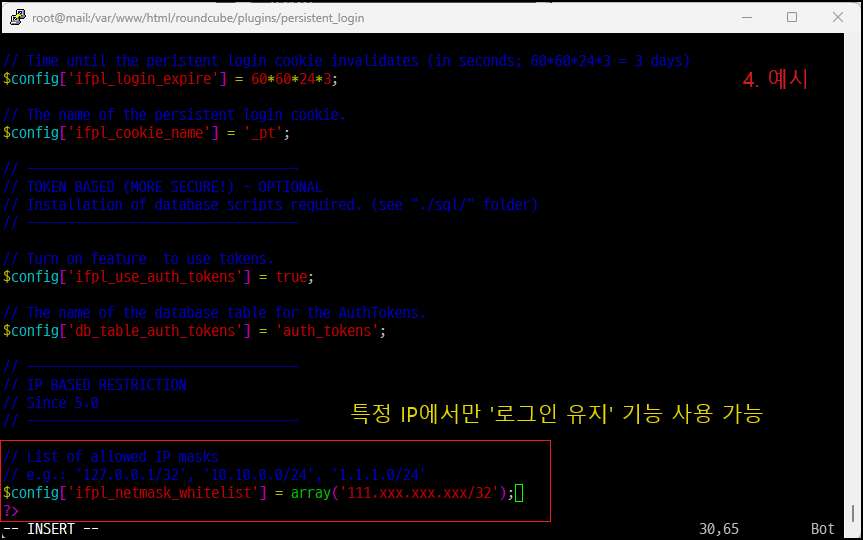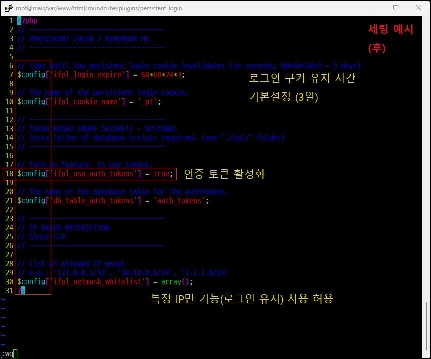 [root@mail persistent_login]# vim config.inc.php [환경 설정 열기]
