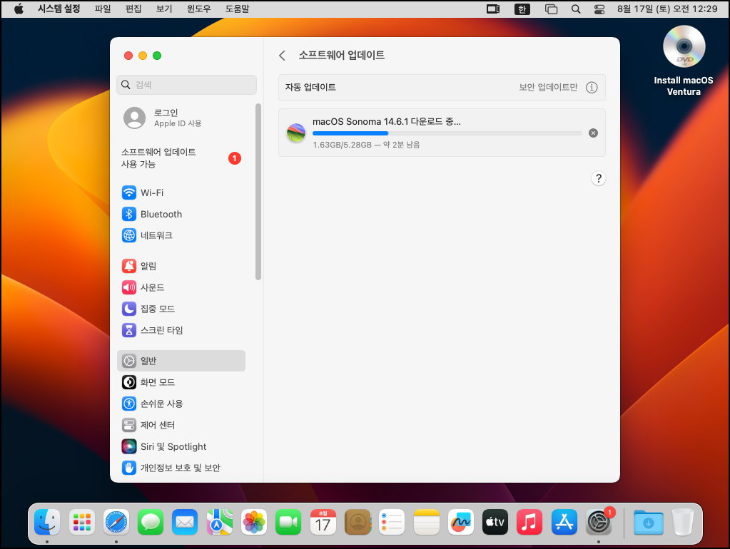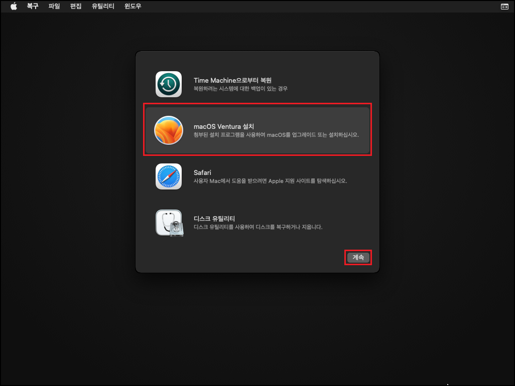설치가... 잘되고 무한 재부팅 없이 잘 작동되네? 응? 혹시나 해서 몇 시간 정도 계속 테스트해 보았지만 문제없이 작동이 되었습니다. 이참에 Sonoma로 업그레이드까지 해보았습니다.