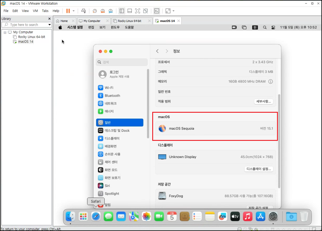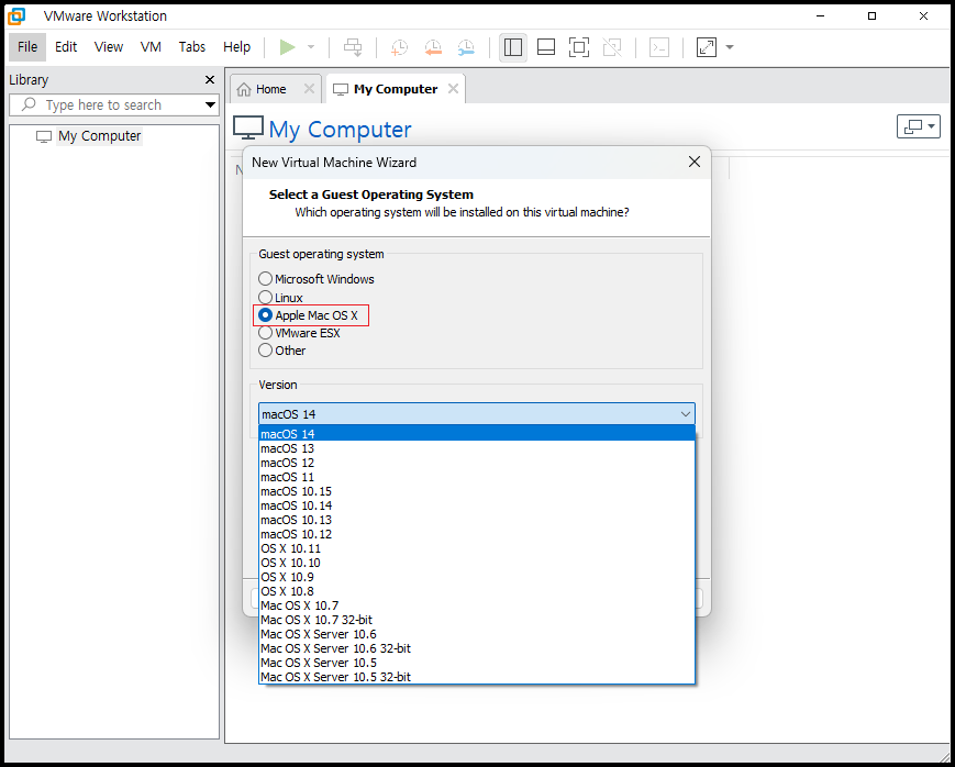 마지막 버전인 MacOS Sonoma(소노마)「macOS 14」까지는 설치가 가능한 것으로 보입니다. MacOS Sequoia(세쿼이아)「macOS 15」가 곧 2024년 가을에 나올 예정인데 브로드컴 인수 이후에도 VMware에서 새로운 OS에 대해 업데이트 대응을 할지 미지수네요.
