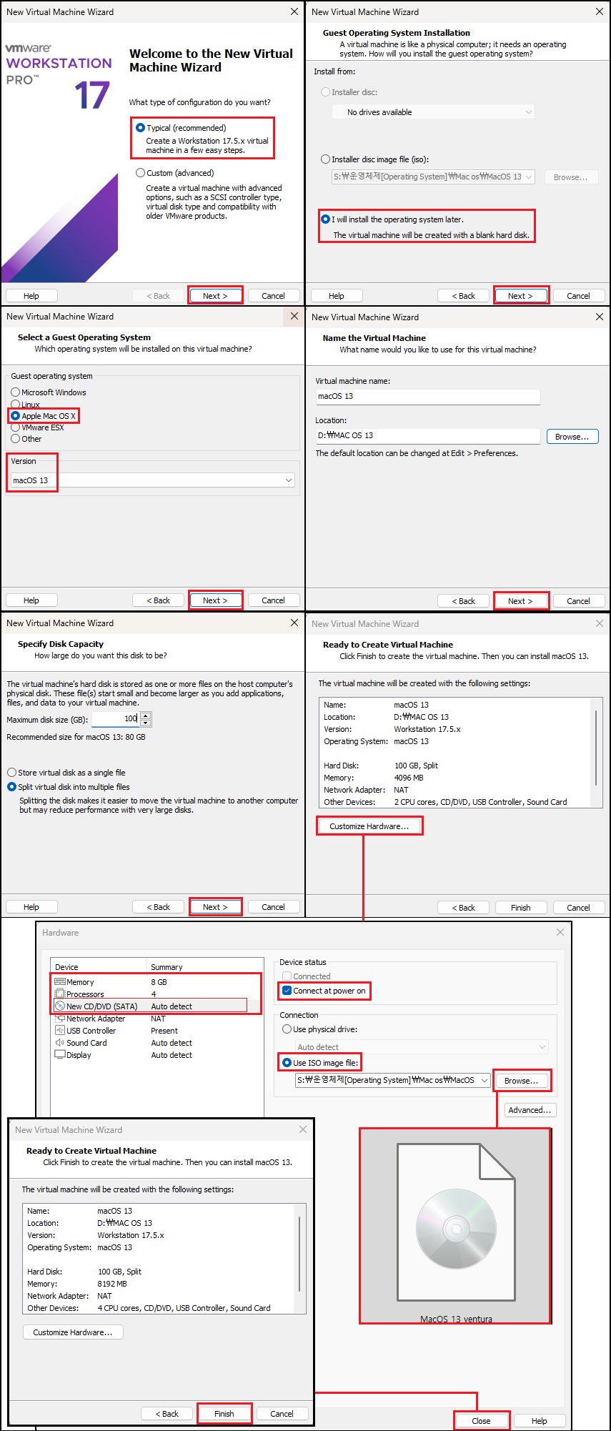 필자는 이전에 MacOS Ventura(벤투라)「macOS13」을 「.ISO」 파일로 만든 게 있습니다. Unlocker를 이용해 출시되지 마자 테스트를 해보았었는데 당시에는 Workstation에서 사용자 환경에 따라 무한 재부팅되는 이슈가 있었습니다. 억지로 설치를 해도 조금만 사용하다 보면 바로 재부팅이 되는 문제가 있어서 결국 포기하고 정상적으로 설치한 MacOS Monterey(몬트레이)「macOS 12」를 이용하여 클라이언트 테스트를 진행했었습니다. 다시 한번 재설치 시도를 해보겠습니다. 스크린샷 위주로 쭈욱 넘겨보시면 됩니다.
