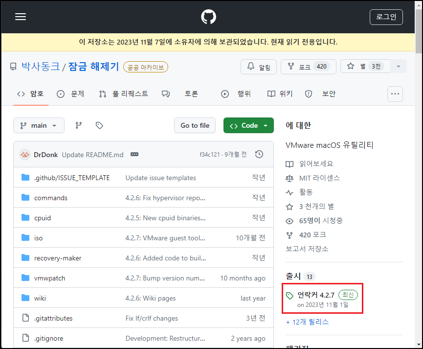 ② 개발자「DrDonk」 Github 사이트에서 Unlocker 다운로드하기 : https://github.com/DrDonk/unlocker