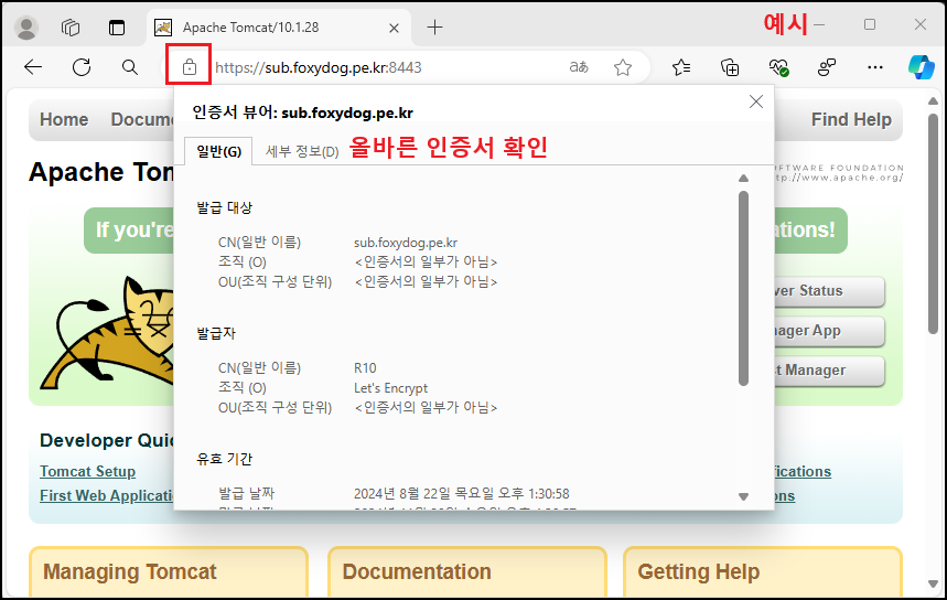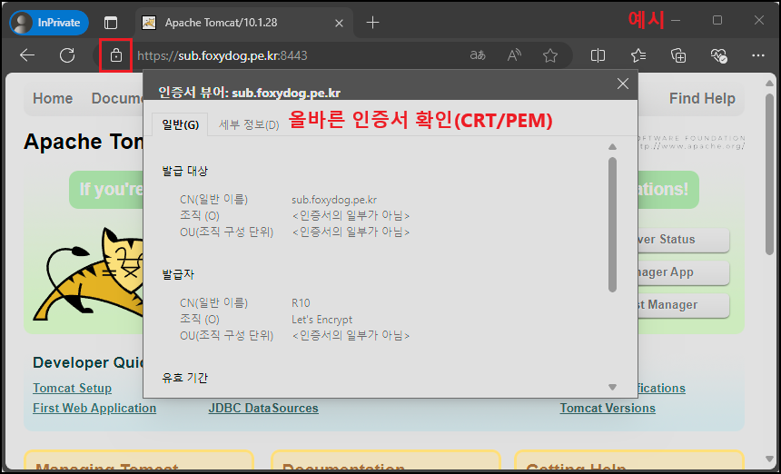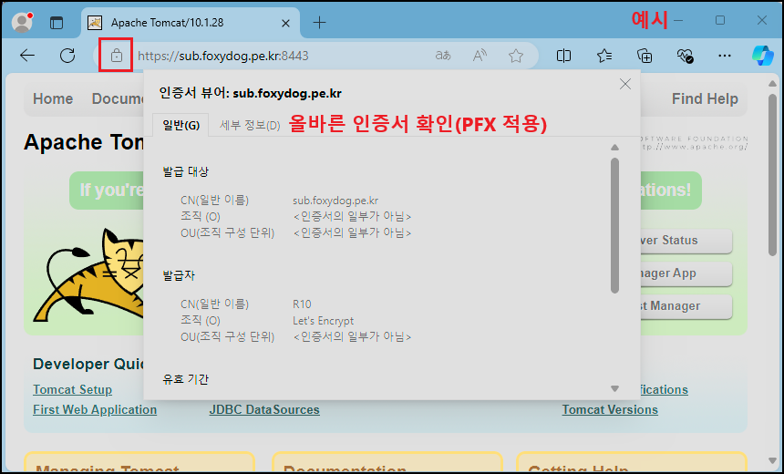 ④ 「Apache Tomcat - PFX」 인증서 적용 및 확인