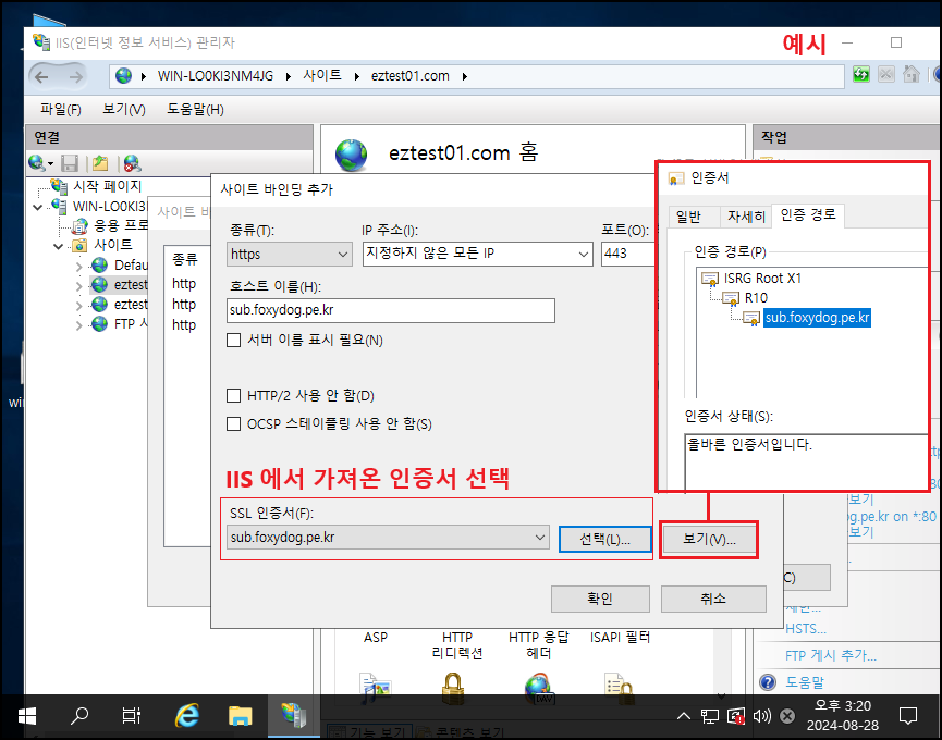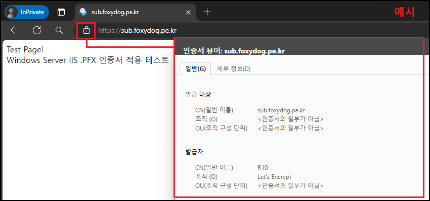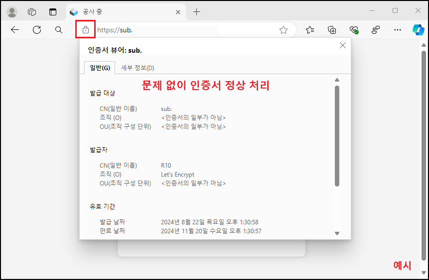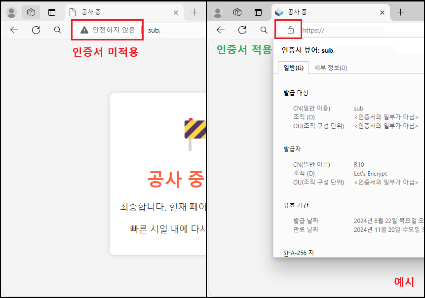 ※ 테스트를 위해 무료 인증서 발급 업체를 이용, 「Let's Encrypt」 포스팅 참고