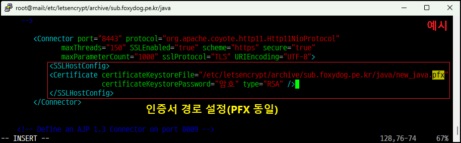 certificateKeyFile="/인증서경로/java/privkey1.pem"