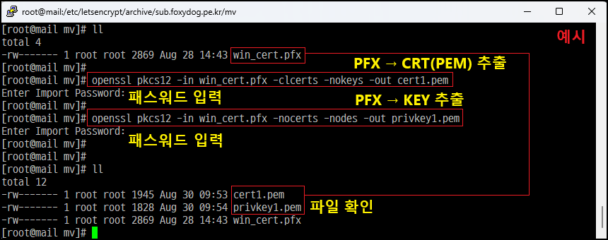◇ PFX → CRT(PEM) 추출 (PFX 암호 필요)