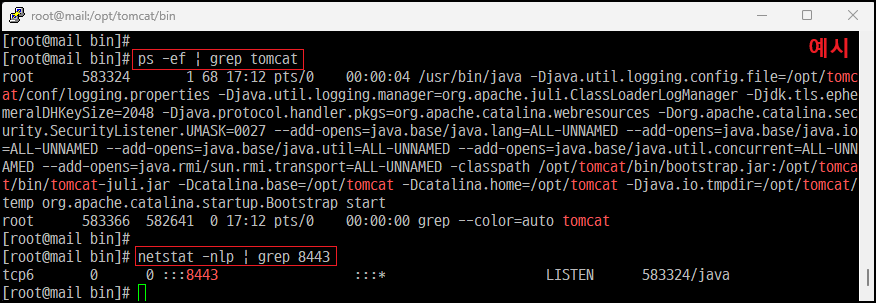 [root@]# ps -ef | grep tomcat [재구동 후 프로세스 확인]