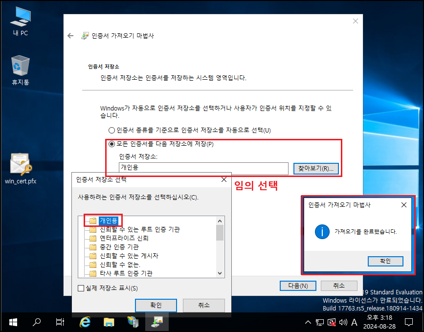※ 패스워드는 될 수 있으면 다르게 하지 말고 동일하게 세팅할 것(실제 인증서 적용 시 혼동 발생)