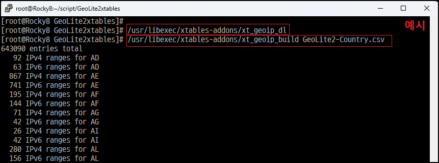 [root@]# mv ./*.iv* /usr/share/xt_geoip/ [작업했던 경로에서 진행]