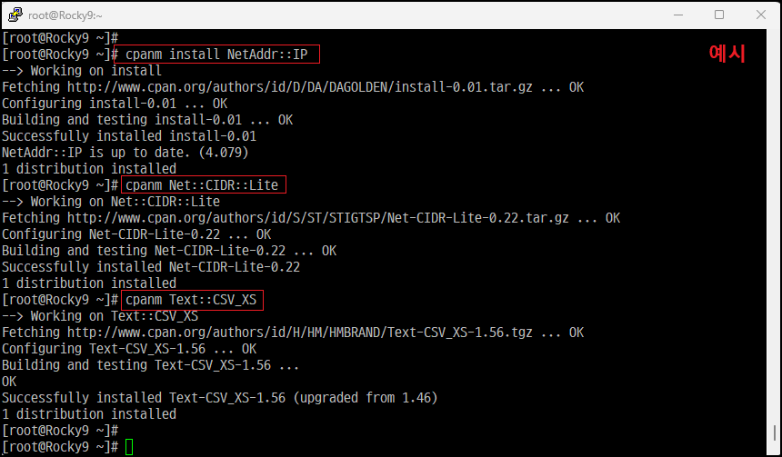 ※ perl-App-cpanminus(Cpanm)는 Perl-CPAN보다 경량화된 도구로, 설정 없이 빠르게 Perl 모듈을 설치하고 관리할 수 있는 툴입니다. Cpanm이 더 가볍고 사용이 간편한 반면, Perl-CPAN은 더 많은 기능을 제공합니다.