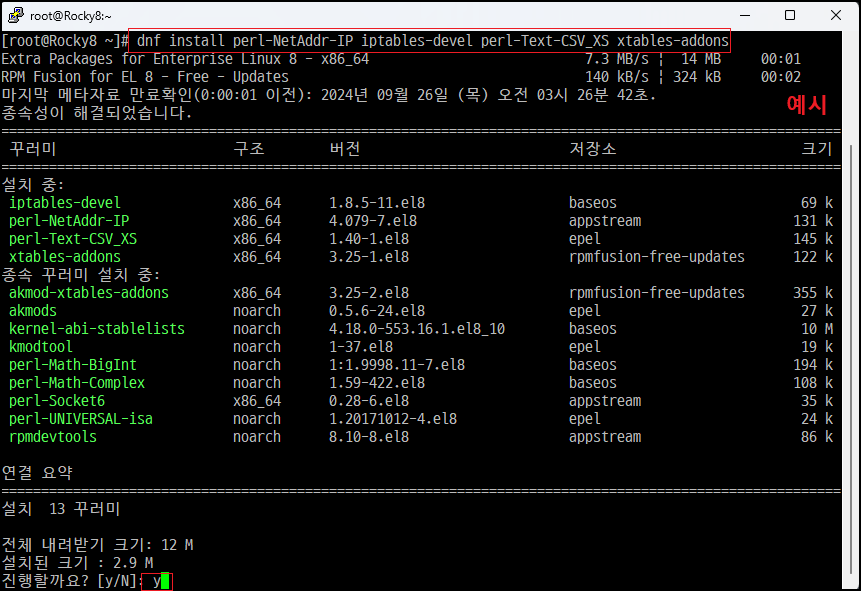 [root@]# dnf install perl-NetAddr-IP iptables-devel perl-Text-CSV_XS xtables-addons