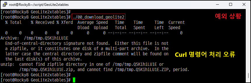 # curl $GEOLITEURL > $TEMPZIP [ #(주석) 처리 후]