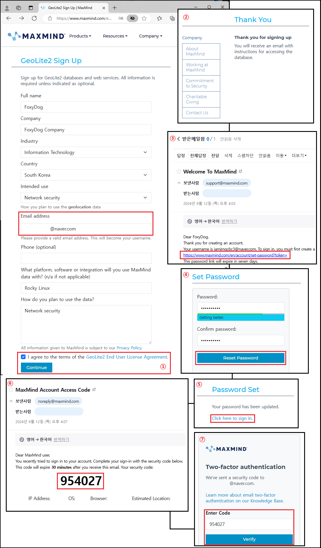 1. GeoLite2 Sign Up 가입 정보 입력, 「Email address」 정확히 입력