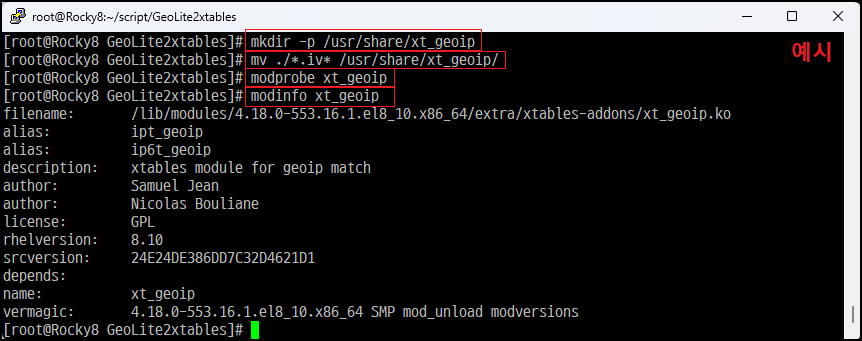 [root@]# modprobe xt_geoip [모듈 (재)로드]