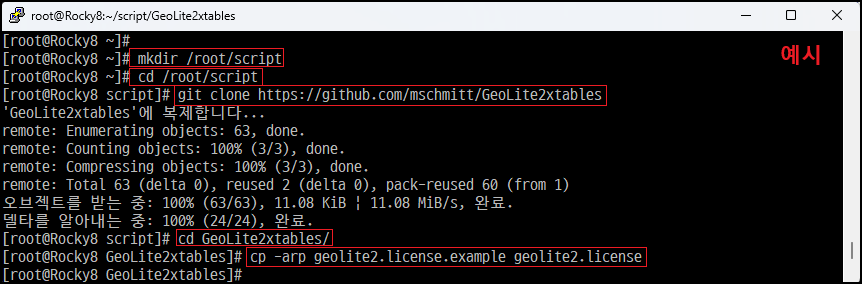 [root@]# git clone https://github.com/mschmitt/GeoLite2xtables [다운]