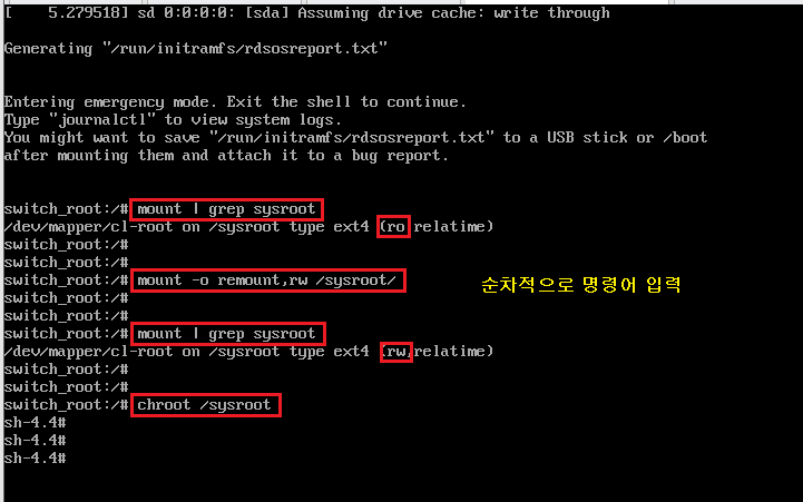 [ sysroot ] 디렉터리를 읽기 쓰기 권한 [ rw ]으로 재 마운트를 합니다.