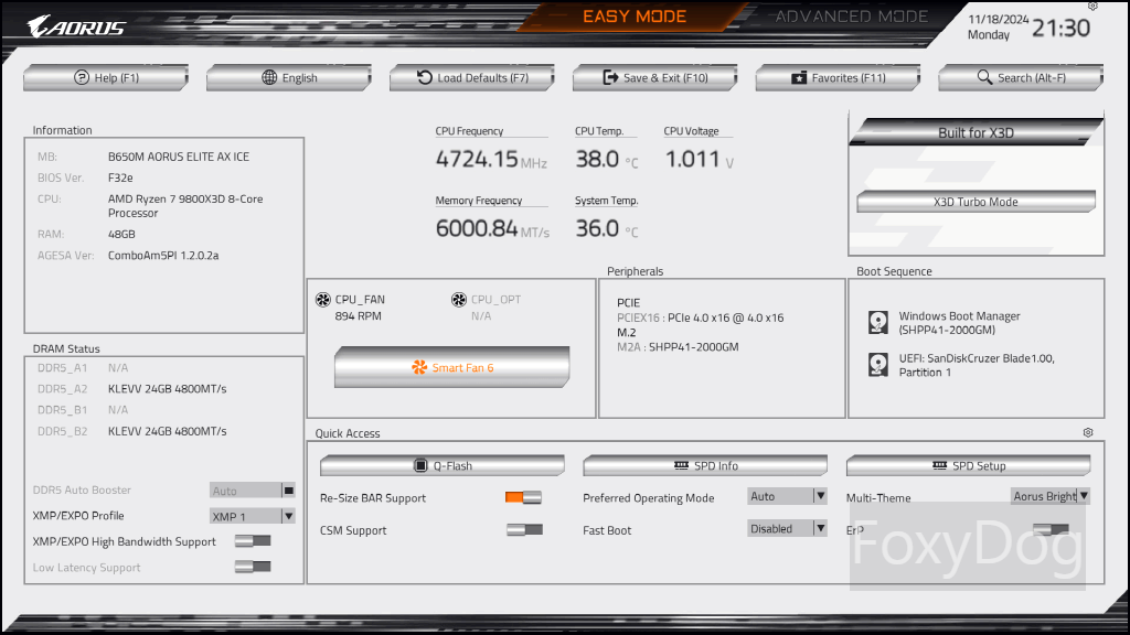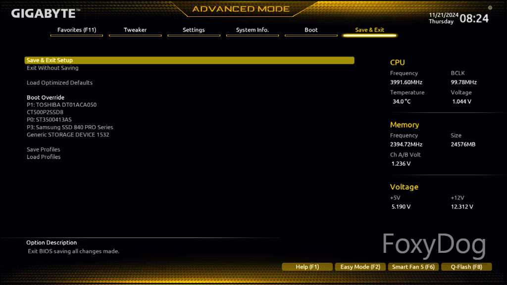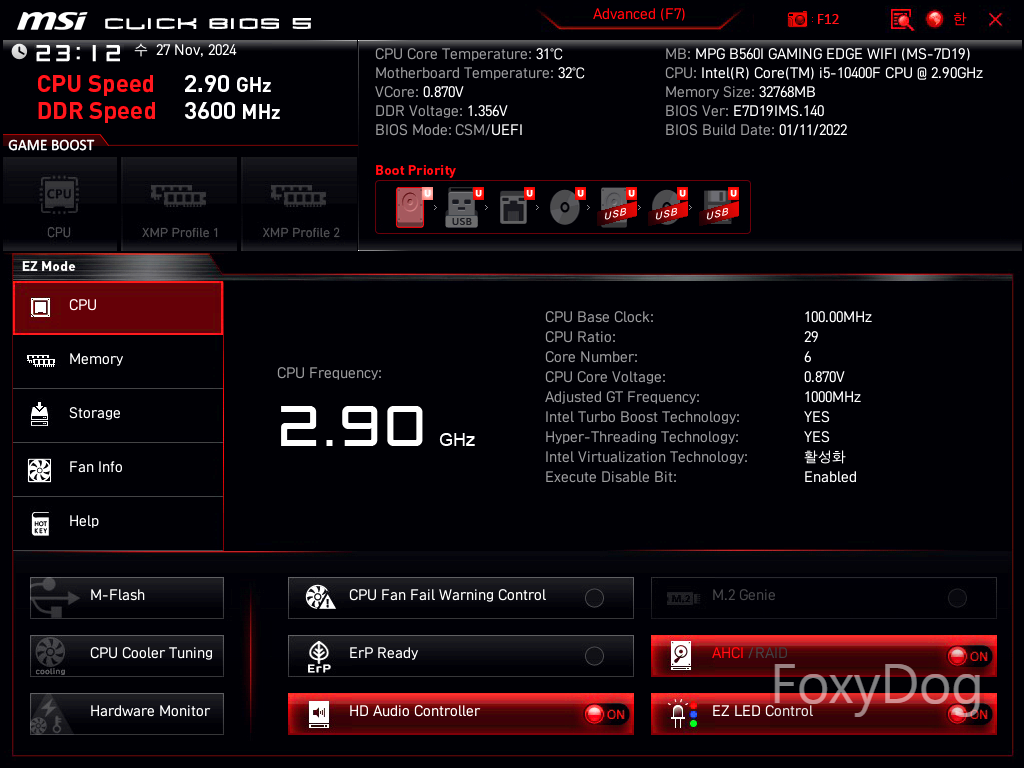 BIOS Ver : F32e 「2024년 11월 12일 / 공식 홈페이지 참고」