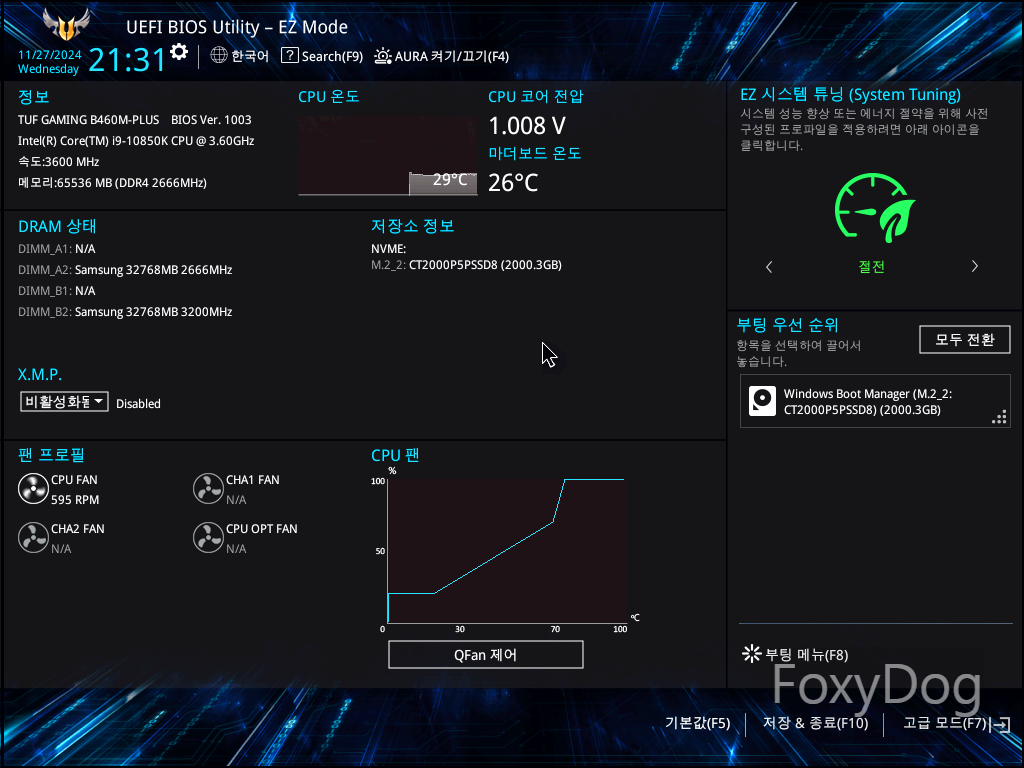 BIOS Ver : 1003 「2020년 12월 15일 / 공식 홈페이지 참고」