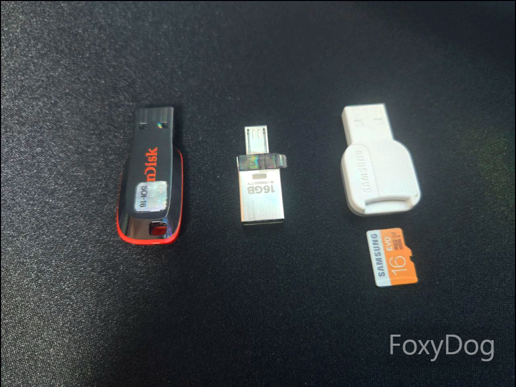 먼저 테스트를 해보았을 때는 USB 드라이브로 인식할 수 있는 제품이라면 종류는 크게 문제가 없는 것 같습니다. 예시로 SD카드도 USB 젠더를 이용하면 가능하다는 뜻입니다. 필자도 집안 구석구석 찾아가며 굴러다니던 USB 3개를 확보하였습니다.