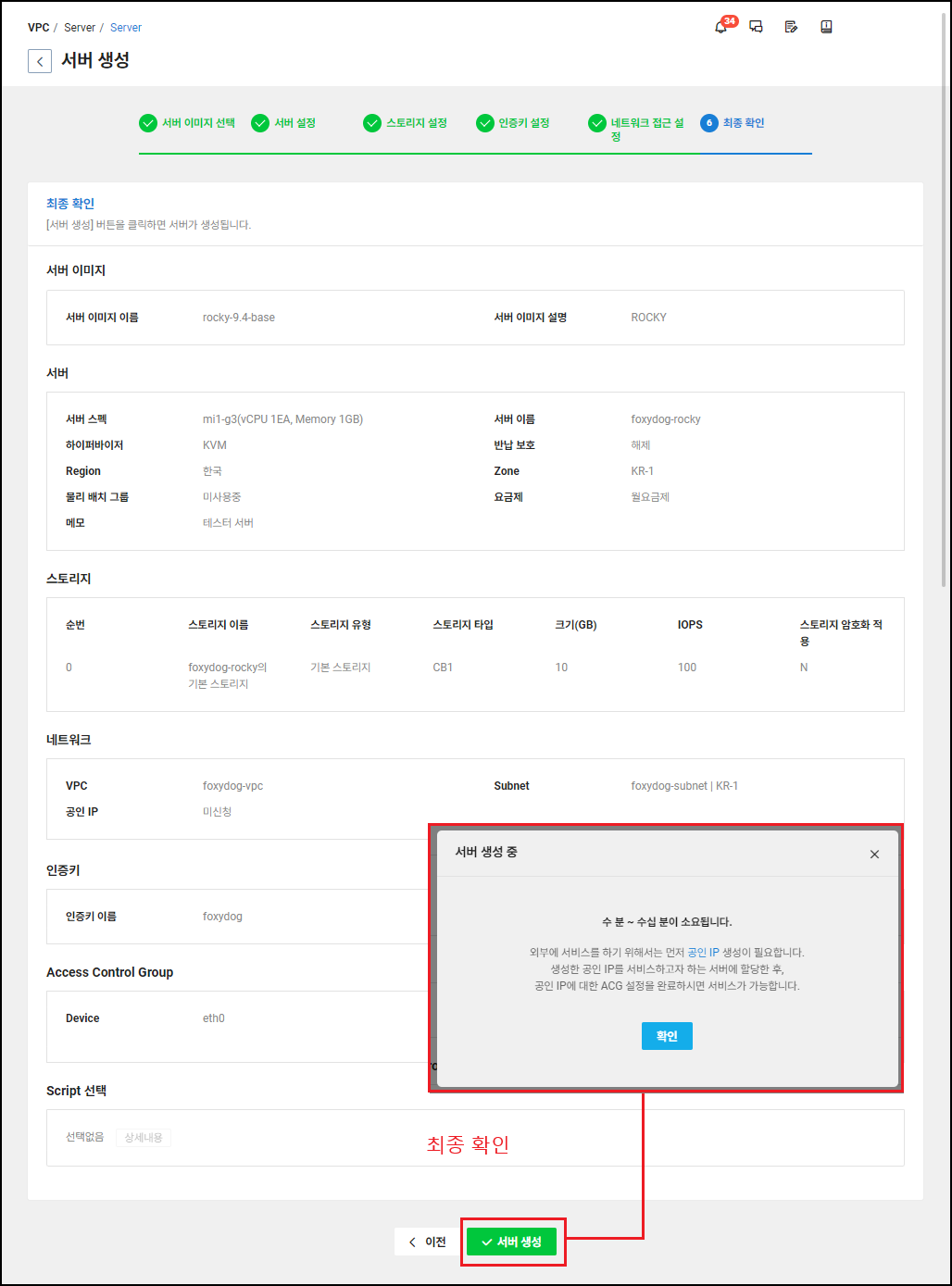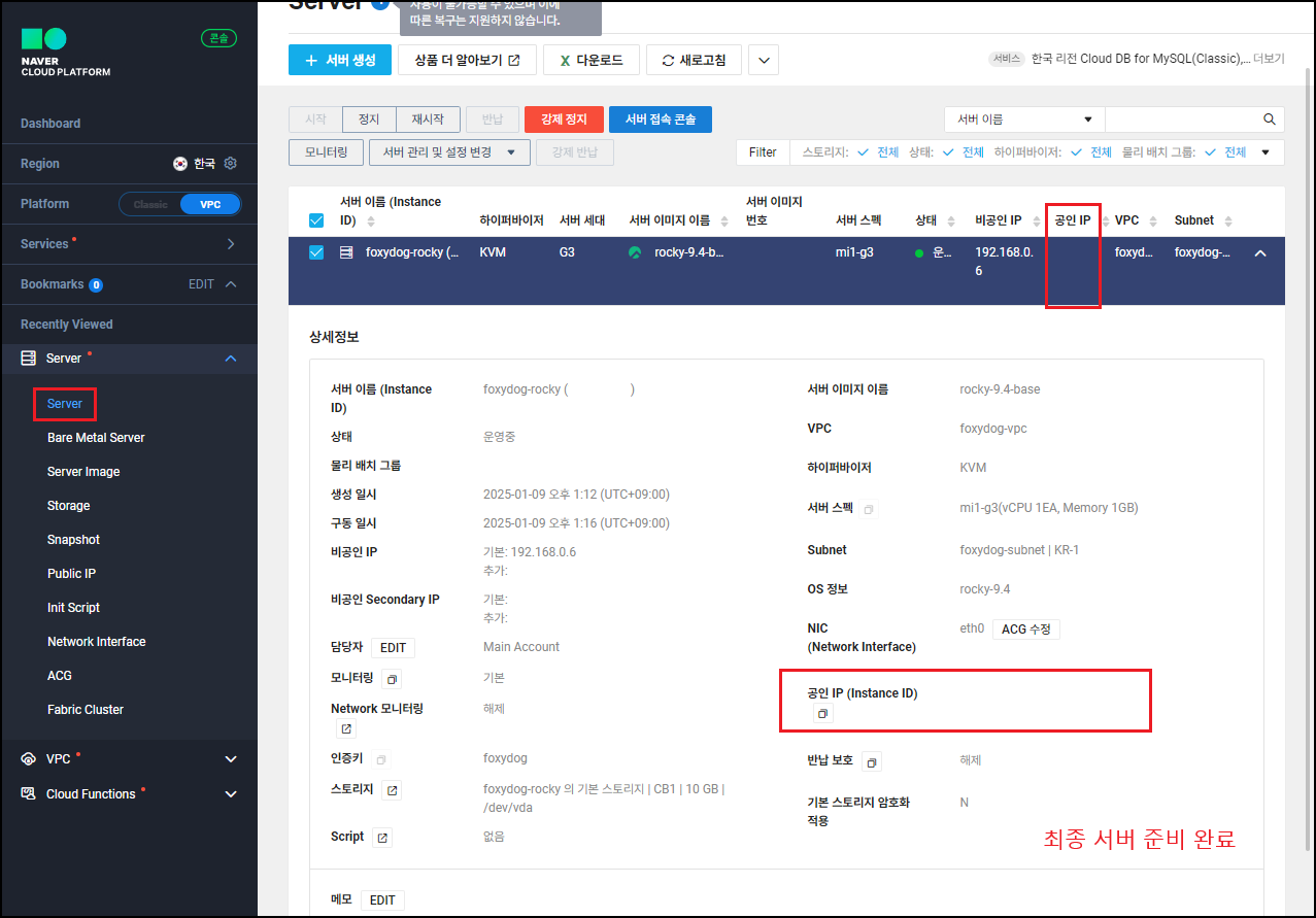 | 공인 IP | 기본 미설정 ( 외부 접근 시 공인IP 할당 필요, 비용 발생 월 4,032원 ) |