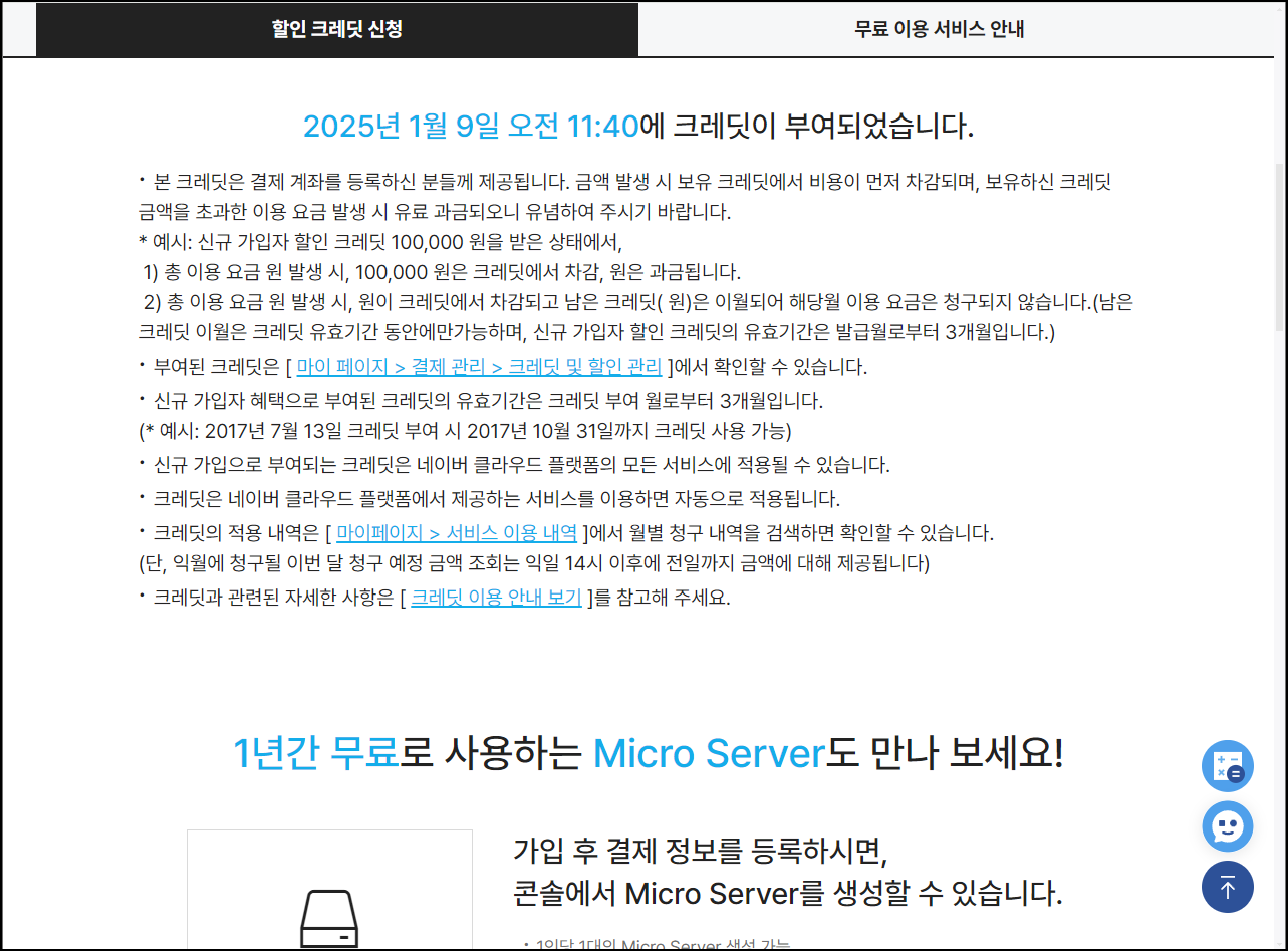 신규 가입 고객 대상 할인 EVENT : https://www.ncloud.com/main/creditEvent