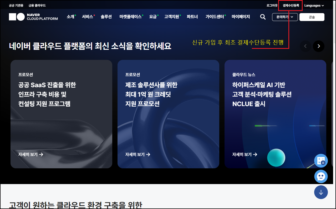 네이버 클라우드 공식 홈페이지 : https://www.ncloud.com/