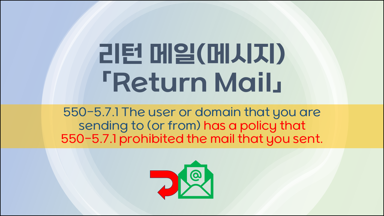 「번역」 귀하가 보내는(또는 보내는) 사용자 또는 도메인에는 귀하가 보낸 메일을 금지하는 정책이 있습니다. 자세한 내용은 도메인 관리자에게 문의하세요. 자세한 내용은 550 5.7.1 URL 주소를 확인하세요.