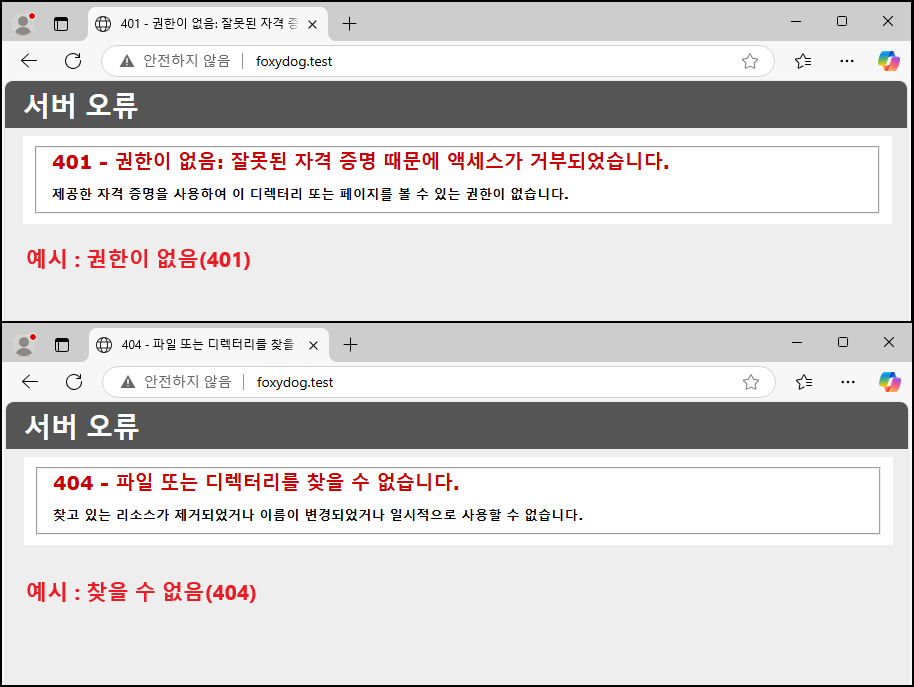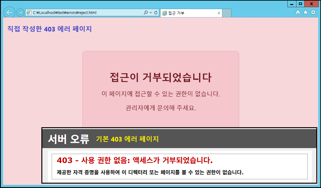 Windows Server IIS는 기능은 추가되어도 기본 기능 자체는 크게 변함이 없어서 좋습니다. 다시 정리하자면 오류 페이지도 하나의 HTTP 요청이므로, 접근 제한 정책에 영향을 받습니다. 전체 거부 정책을 사용하더라도, 오류 페이지용 경로만은 반드시 허용해야 합니다. IIS에서는 URL별 예외 허용 기능을 통해 이를 해결할 수 있습니다. 참고하시면 좋을 것 같습니다.