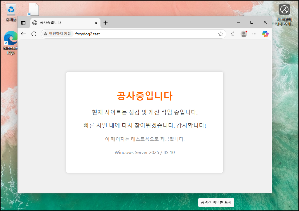 가상(VMware) 테스트에서는 「Windows Server 2012 R2 IIS 8.5」로 진행하였지만, 최근 「Windows Server 2025 IIS 10」 서버에서 동일하게 진행해 보니 거의 변화가 없는 것으로 확인되었습니다. 참고 자료는 위 공식 홈페이지 문서 링크를 클릭해 주시면 됩니다. 모든 사진은 직접 테스트하면서 캡처하였습니다. (※ 스압 주의)