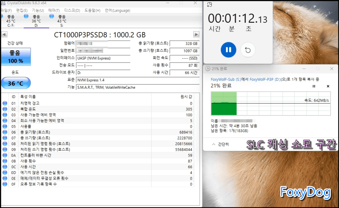 ※ 이미 1TB에 약 1/3 정도 데이터가 있어 바로 최대 속도로 나오지는 않습니다. 그냥 이렇구나라고만 생각하시면 됩니다.