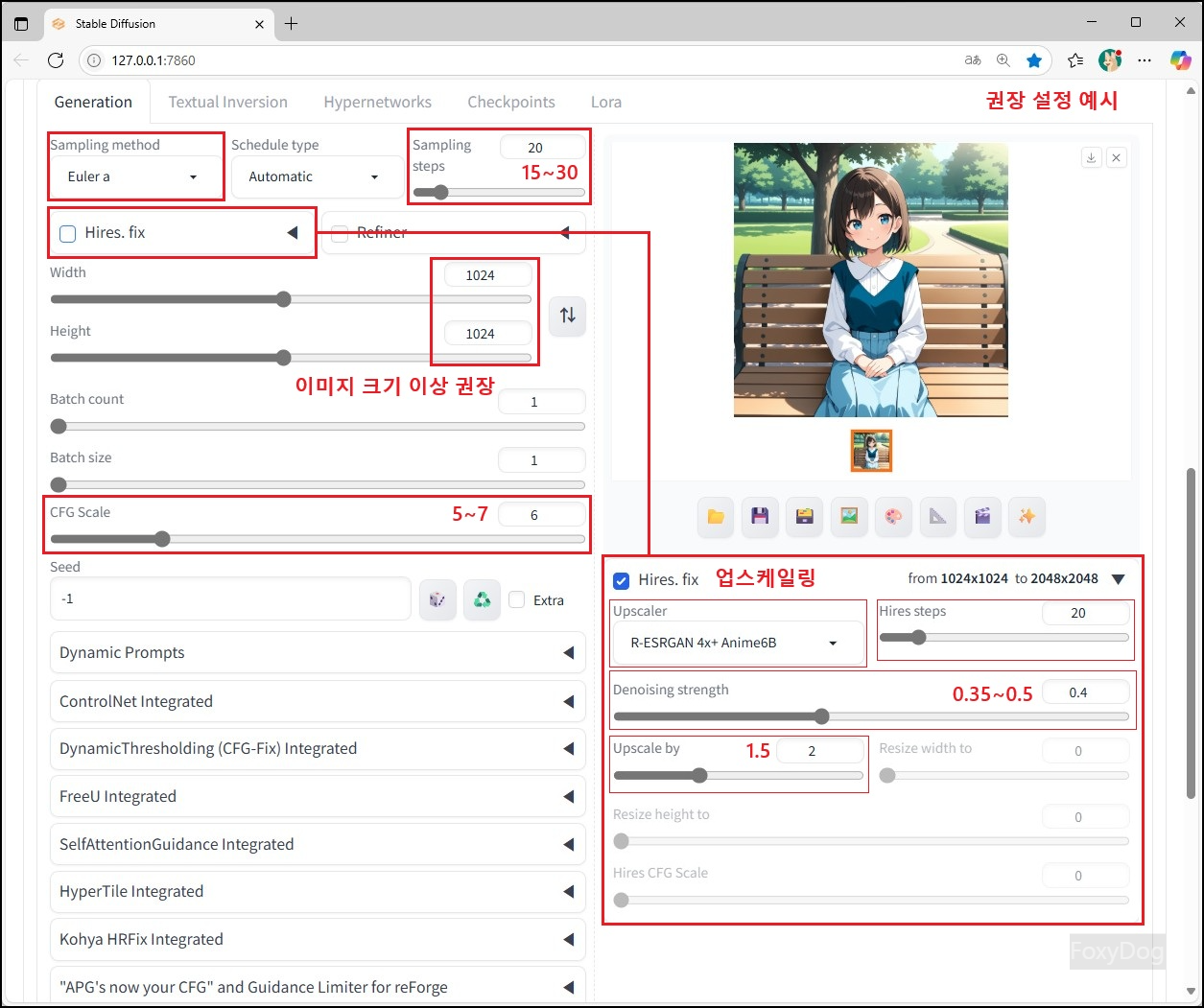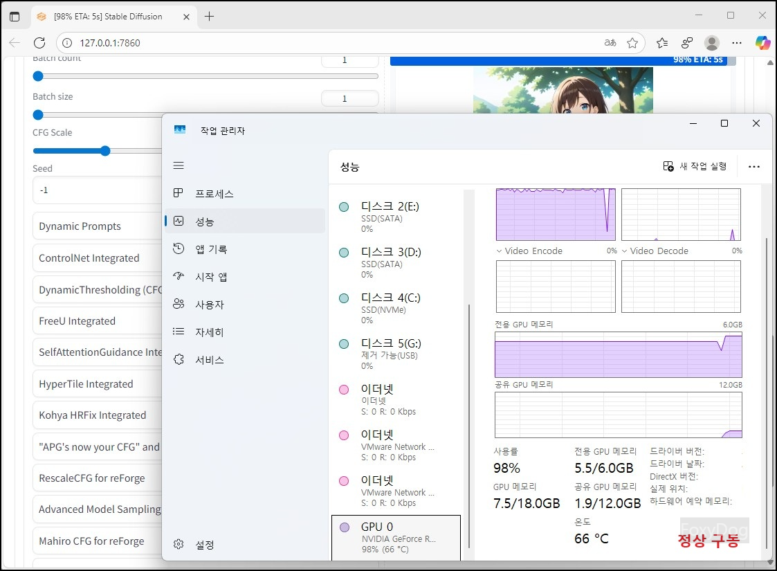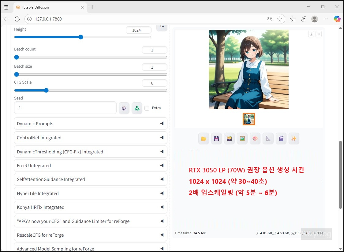 아직까지 ITX 케이스에 대한 미련이 남아 있는 상태라, 서브 컴퓨터 용도로 사용해 볼 겸 구매하게 되었습니다. 그러면 위와 같이 Stable Diffusion WebUI reForge 똑같이 설치하여 제대로 AI 그림을 처리하는지 테스트해 보겠습니다.