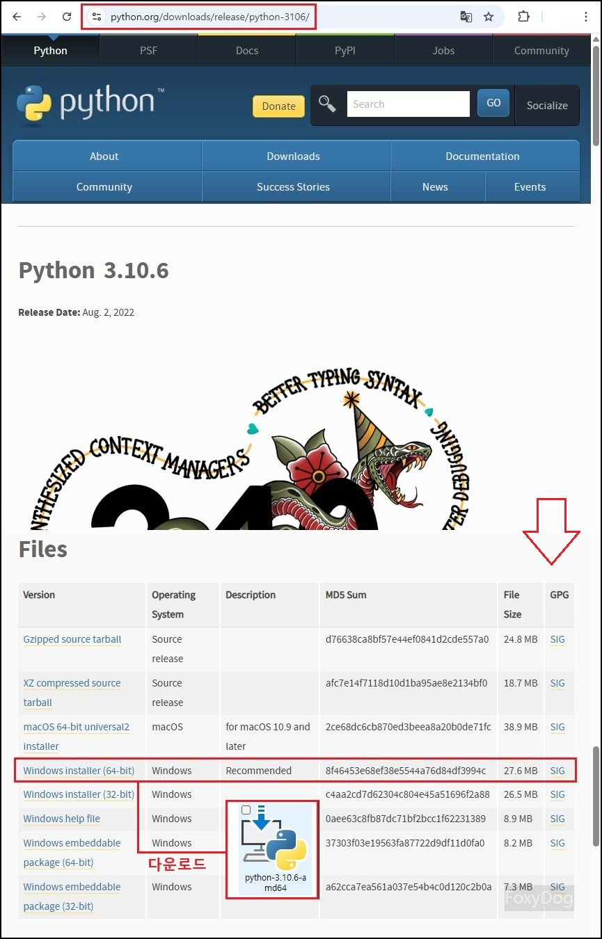 ※ 공식 다운로드 경로(3.10.6) : https://www.python.org/downloads/release/python-3106/