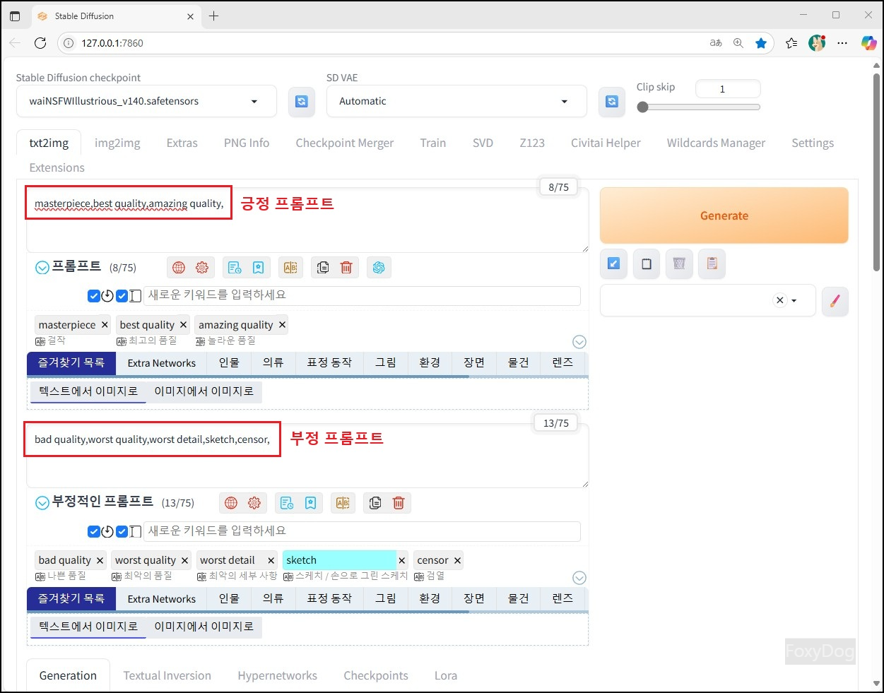 ◈ waiNSFWIllustrious_v140 모델 간단 사용 방법