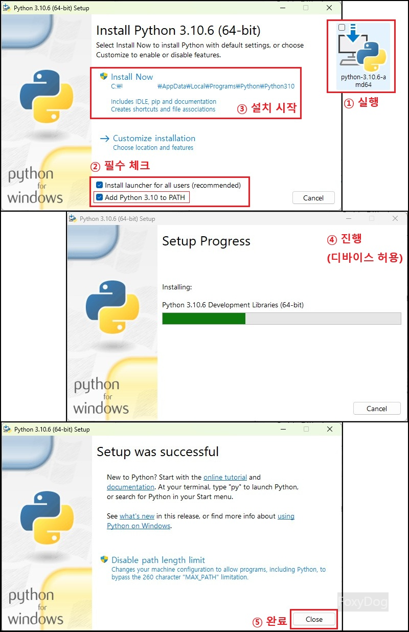 ※ 설치 시「Add Python 3.10 to PATH」 필수 체크