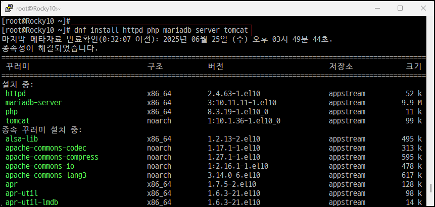 □ 웹서버 구축, 기본 저장소[Apache/PHP/MariaDB/Tomcat]에서 각 버전 설치 시