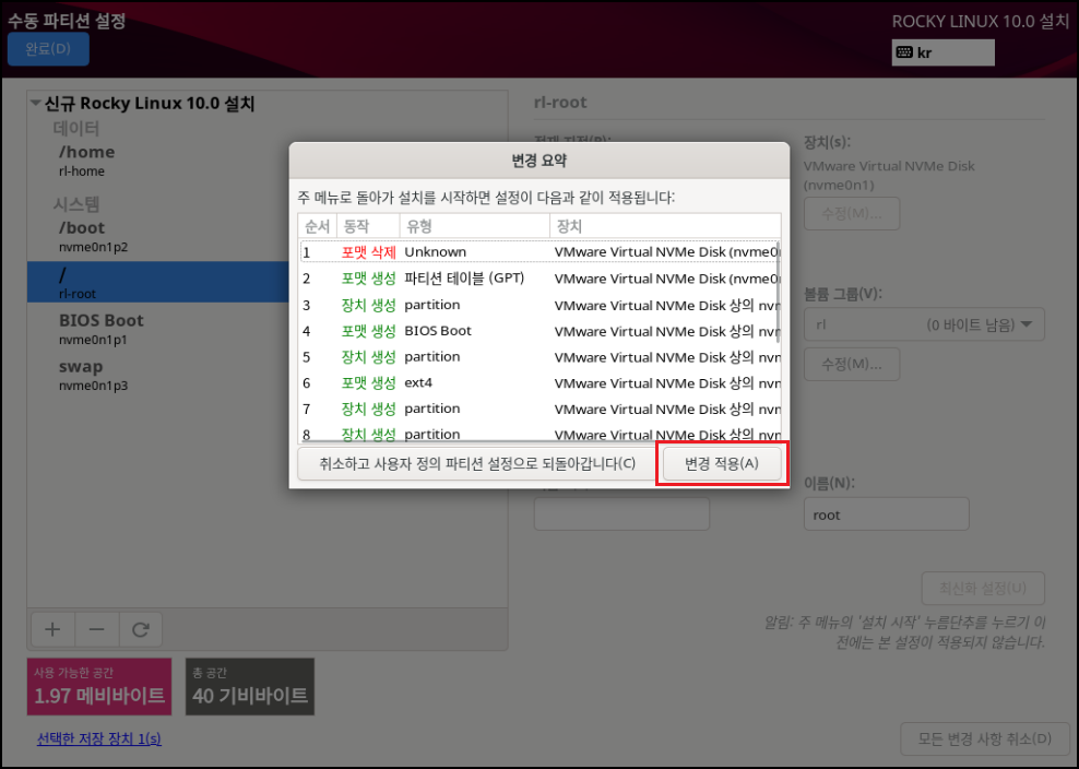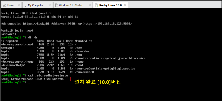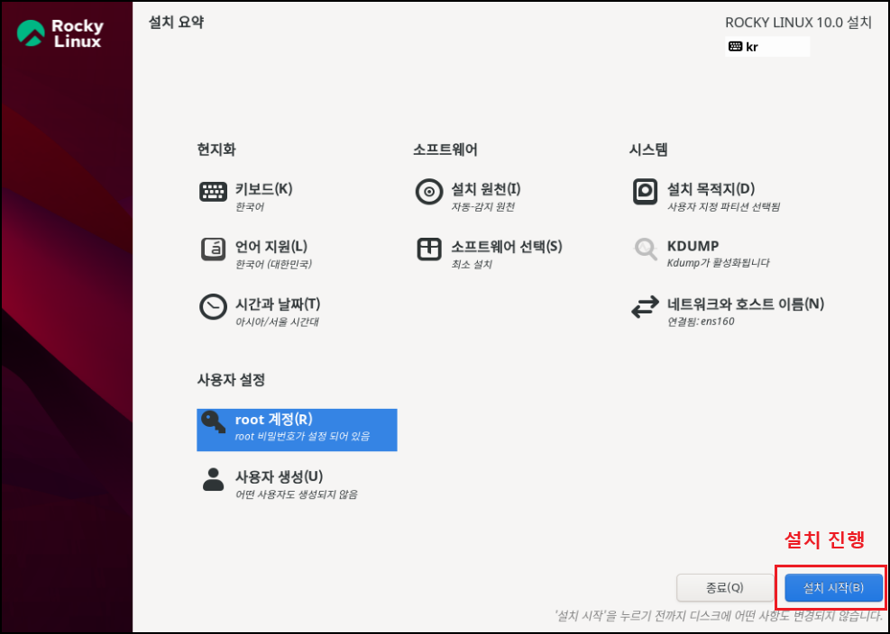 Rocky Linux 10.0 (레드 쿼츠) - 설치