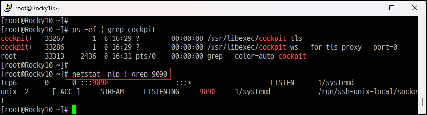 웹 콘솔 관리자 (Web console) = https://hostname:9090/ or https://서버IP:9090/