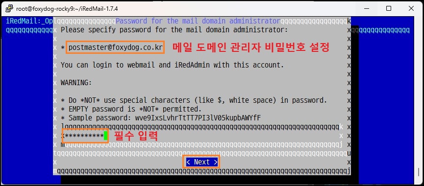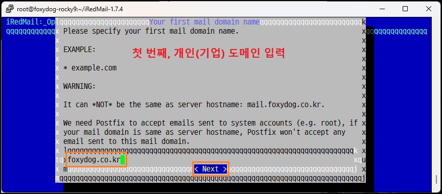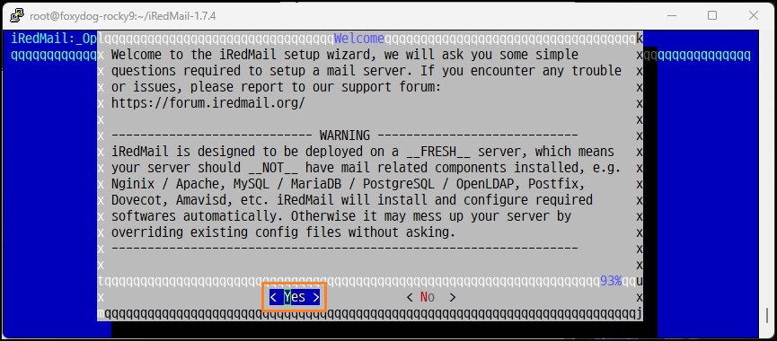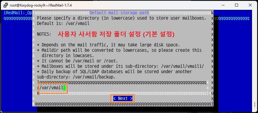[root@localhost]# ./iRedMail.sh (설치 스크립트 실행)