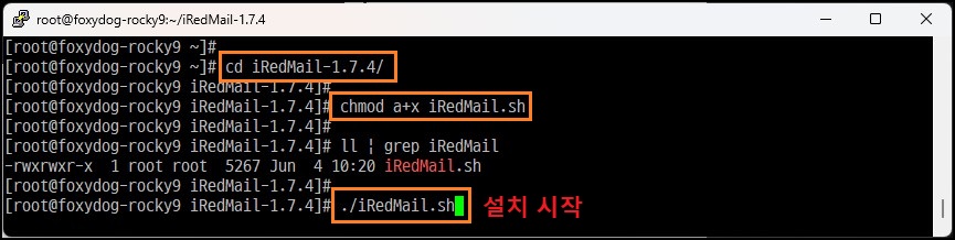 [root@localhost]# chmod a+x iRedMail.sh (실행 권한 부여)