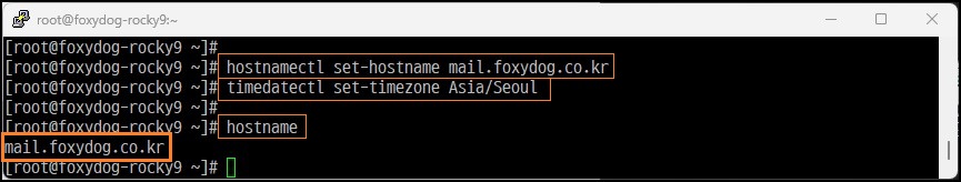[root@localhost]# hostnamectl set-hostname mail.foxydog.co.kr (호스트 변경)