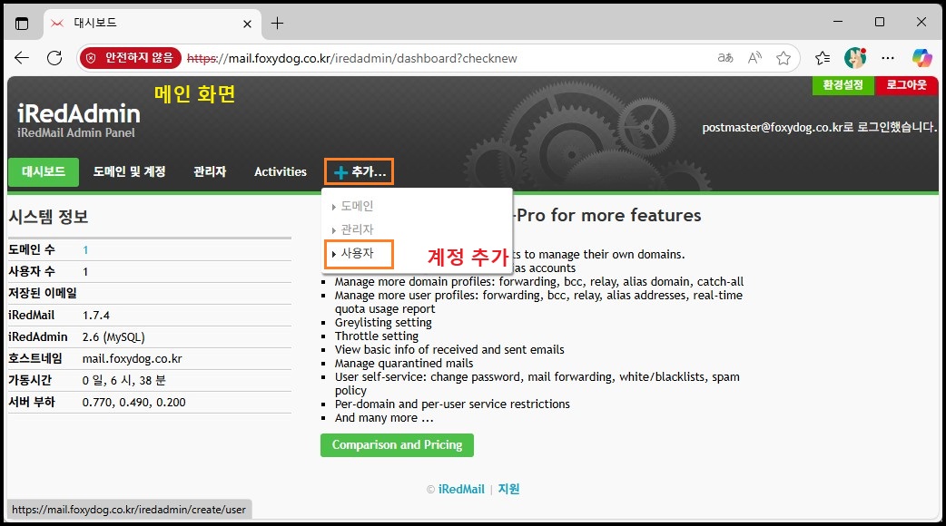 ⓐ iRedAdmin (웹 관리자) 접속