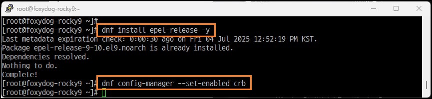 [root@localhost]# dnf config-manager --set-enabled crb (crb 저장소 활성화)