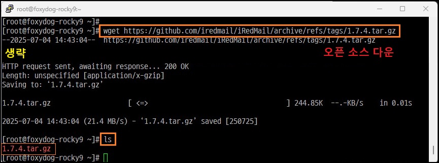 [root@localhost]# wget https://github.com/iredmail/iRedMail/archive/refs/tags/1.7.4.tar.gz (다운로드)