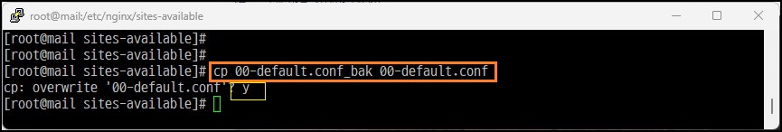 cp: overwrite '00-default.conf'? y (덮어쓰기)