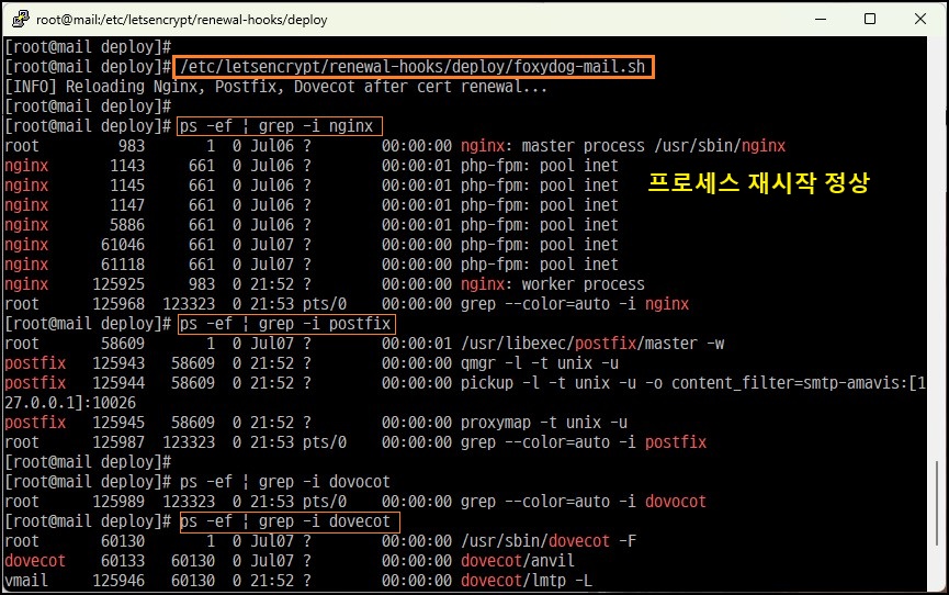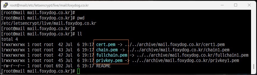 [root@localhost]# /etc/letsencrypt/renewal-hooks/deploy/foxydog-mail.sh